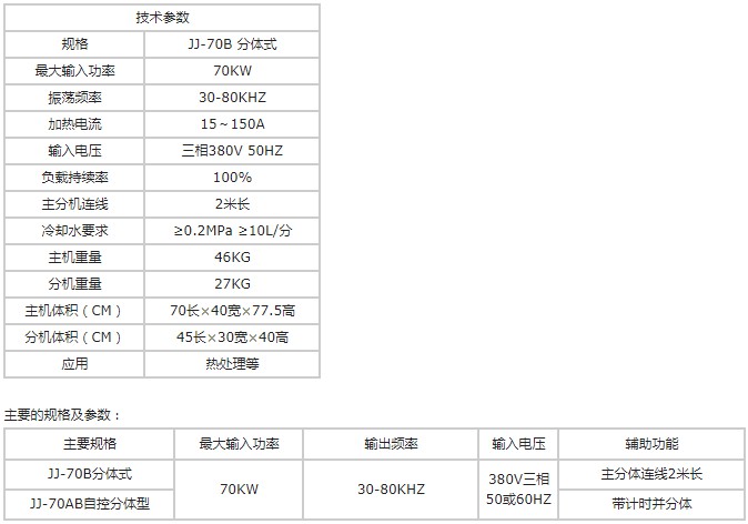 老型的JJ-70B系列設(shè)備結(jié)構(gòu)采用我公司 第三代逆變控制技術(shù),工作可靠性高,諧振電容仍采用串聯(lián)的高頻變壓器原邊的結(jié)構(gòu),設(shè)備成本略低;自2013年開始,新款的JJ-70B完全采用SPG的技術(shù),采用大功率諧振電容,大大減少了高頻變壓器的故障率和功率損耗,且價格仍保持原來JJ-70B 的原價,是目前性價比較好的設(shè)備之一。